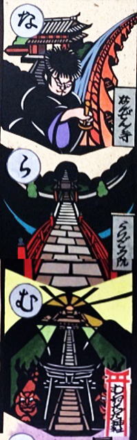 ぬ:ぬりこべ地蔵(伏見区・伏見稲荷の裏手にあり、「病気を封じ込め」が転じて「ぬりこべ地蔵」と呼ばれるようになったという説。歯の痛みを封じ込めるご利益) る:瑠璃寺(浄瑠璃寺の略称。木津川市。美女秘仏「吉祥天女像」 |